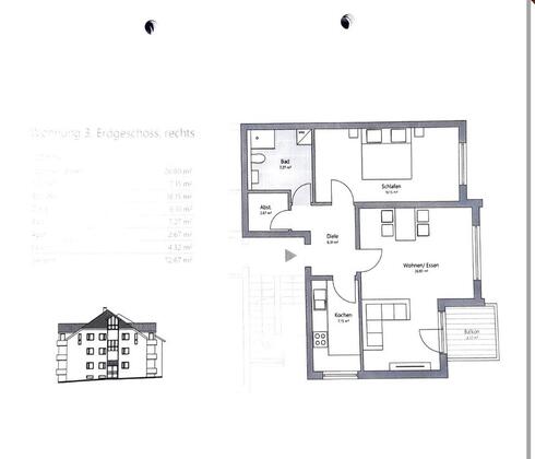 Mehr zum Angebot Erdgeschoss Wohnung - 2 Zimmer mit Balkon - in Heimbach-Weis: