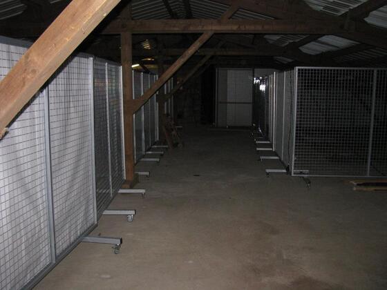 Lagerfläche in Teilbereichn zu vermieten. Die einzelnen Bereiche sind abgetrennt durch Trenngitter bzw. Regalen.